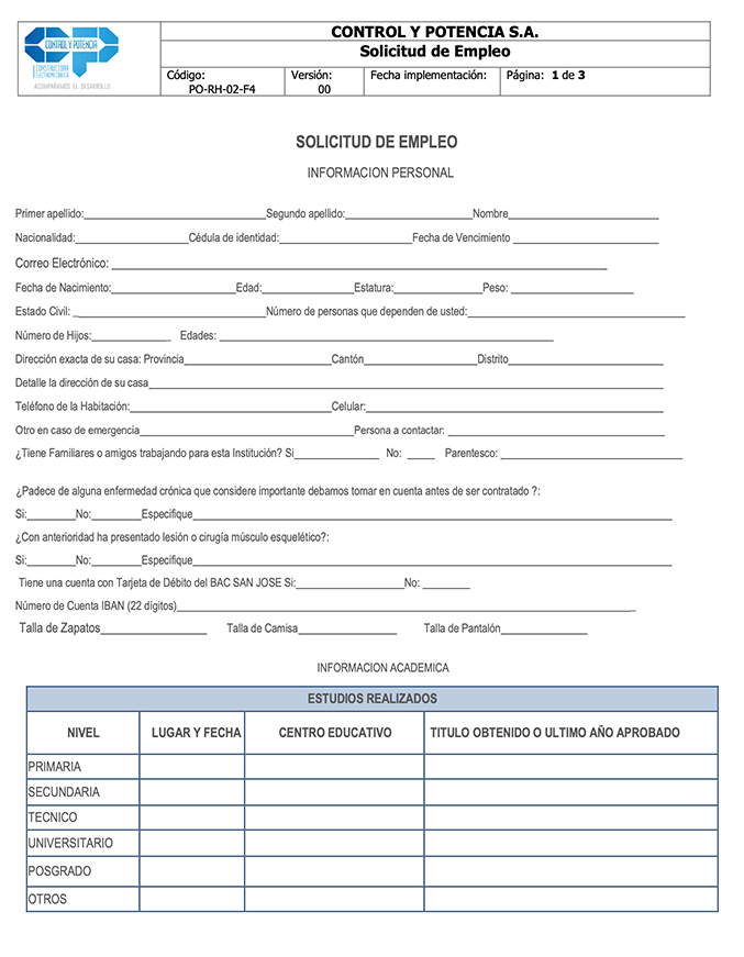 SOLICITUD DE EMPLEO